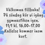 Som sagt på söndag är det dags för gymnastik igen. Samma plats, samma tid.